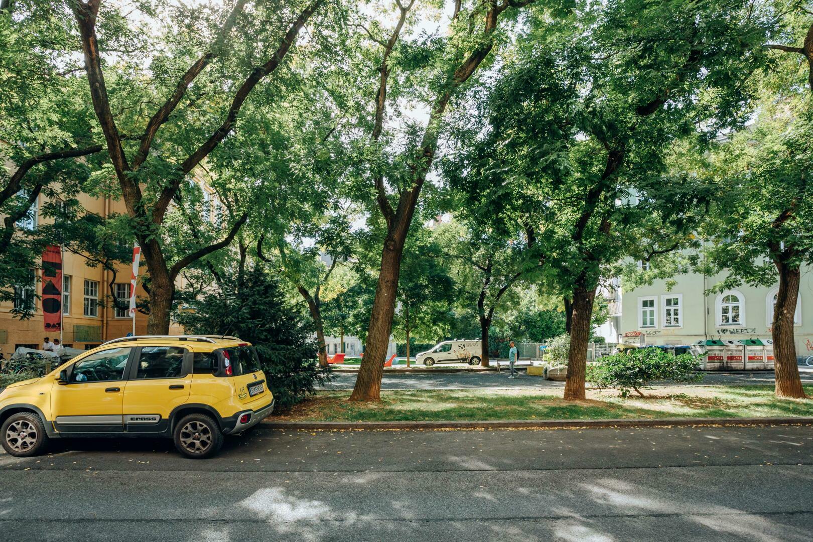 Da die Zimmer zum Ortweinplatz nicht von Gebäuden verschattet sind (und am Platz liegen), sind sie sehr hell.