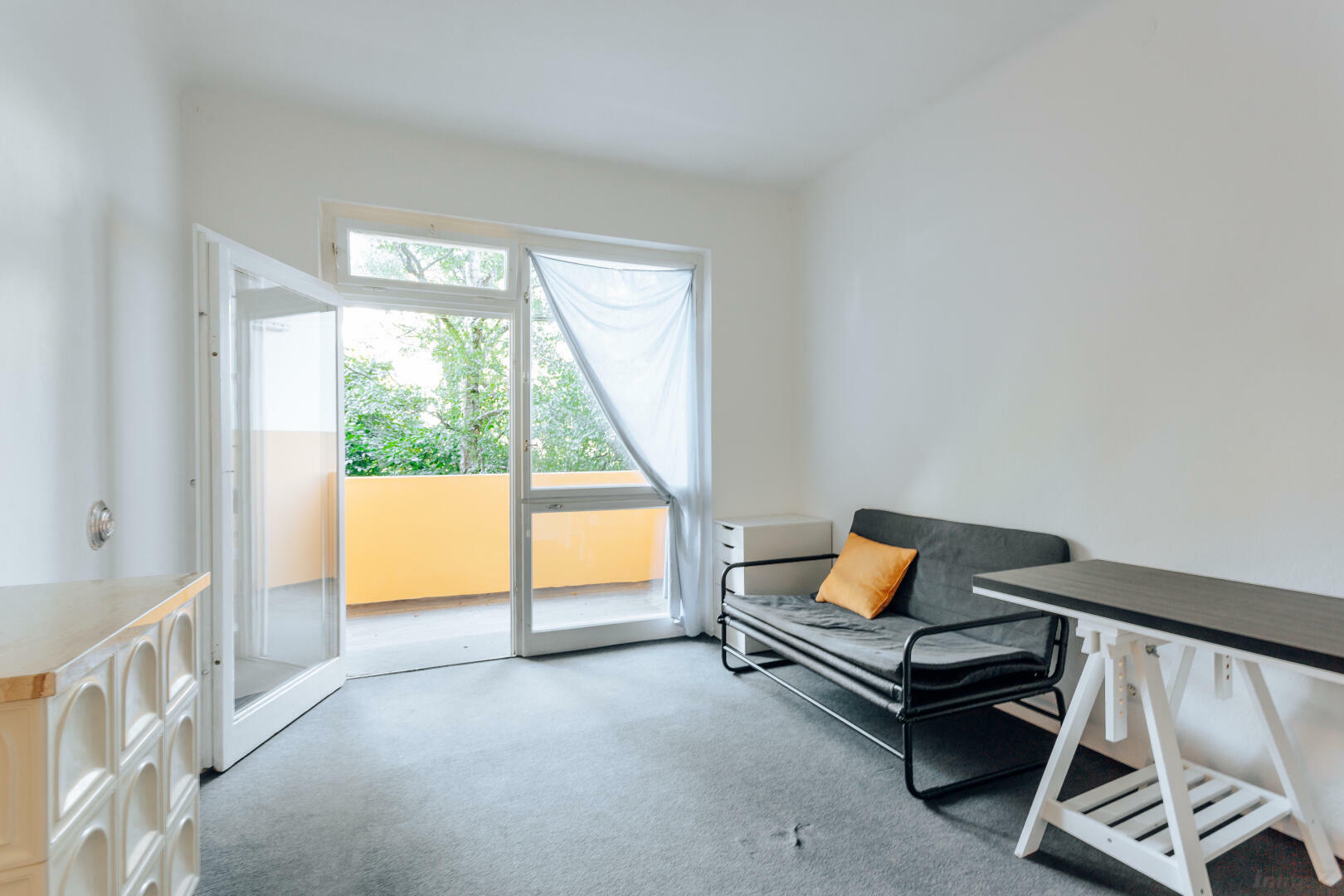 Zwei Zimmer Richtung Ortweinplatz (Westen) und ein Zimmer mit Balkon in den grünen Innenhof (Richtung Osten).