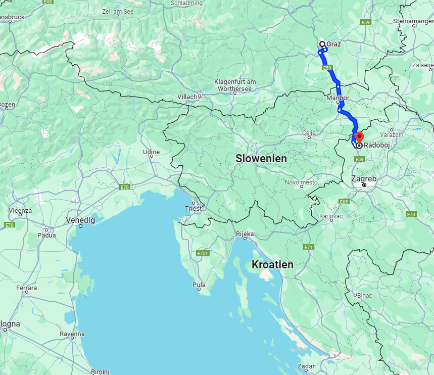 Die schöne Stadt Krapina (deutsch historisch: Grabing) ist nur wenige Minuten Fahrt entfernt und gleichzeitig der Verwaltungssitz der Gespanschaft Krapina-Zagorje. Das tolle Baugrundstück erreicht man in nur 90 Minuten Autofahrt von Graz.
