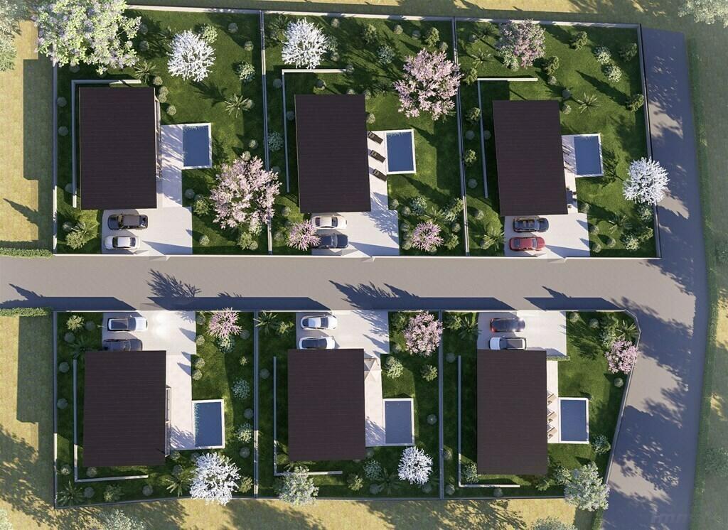Der Bebauungsplan sieht eine Bebauung mit insgesamt 15 Bungalows mit Wohnflächen zwischen 50 m2 und 90 m2 Wohnfläche vor.