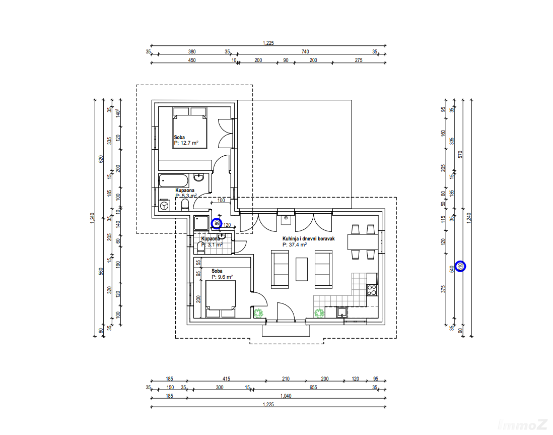 Durch die leichte Hanglage mit Blick ins Grüne, eignen sich die kleinen Bungalows auch sehr gut für eine touristische Nutzung, da es im Umkreis von nur 20 Minuten drei beliebte Thermalbäder gibt. Nach Zagreb sind es nur 35 Minuten und zur Adria nur 2 Stunden fahrt.