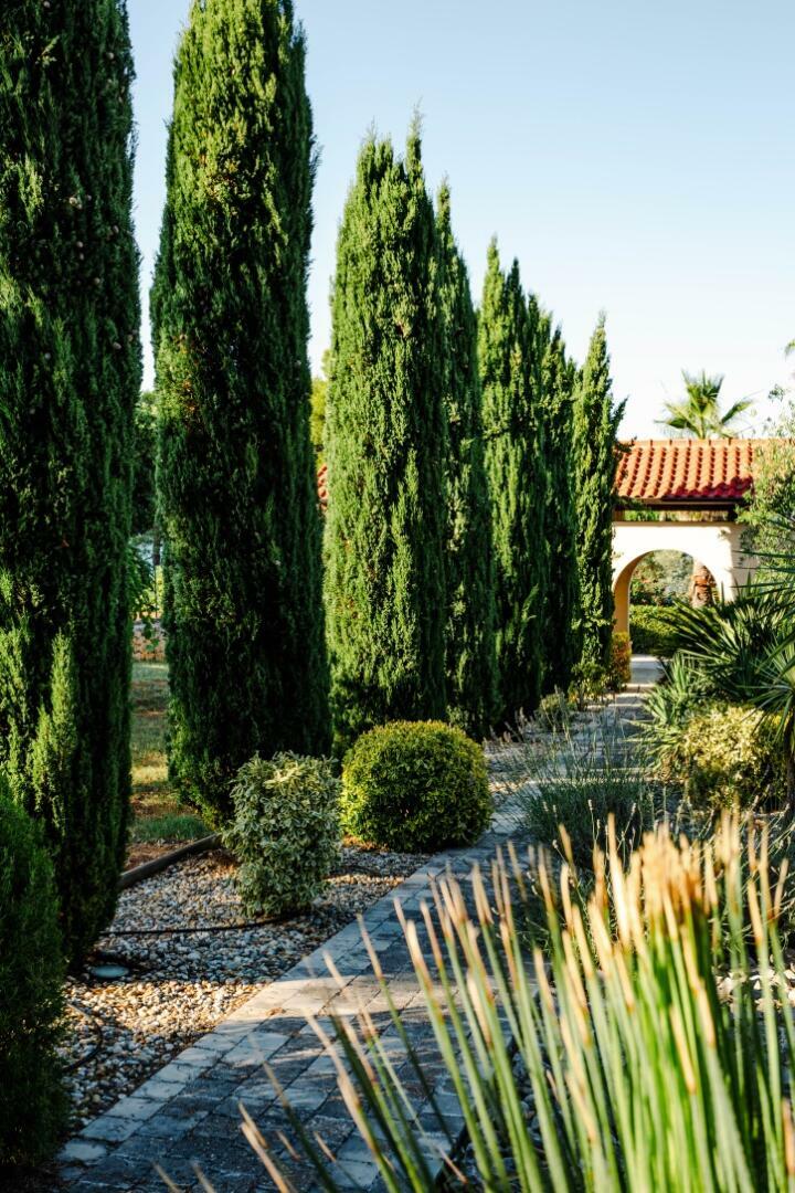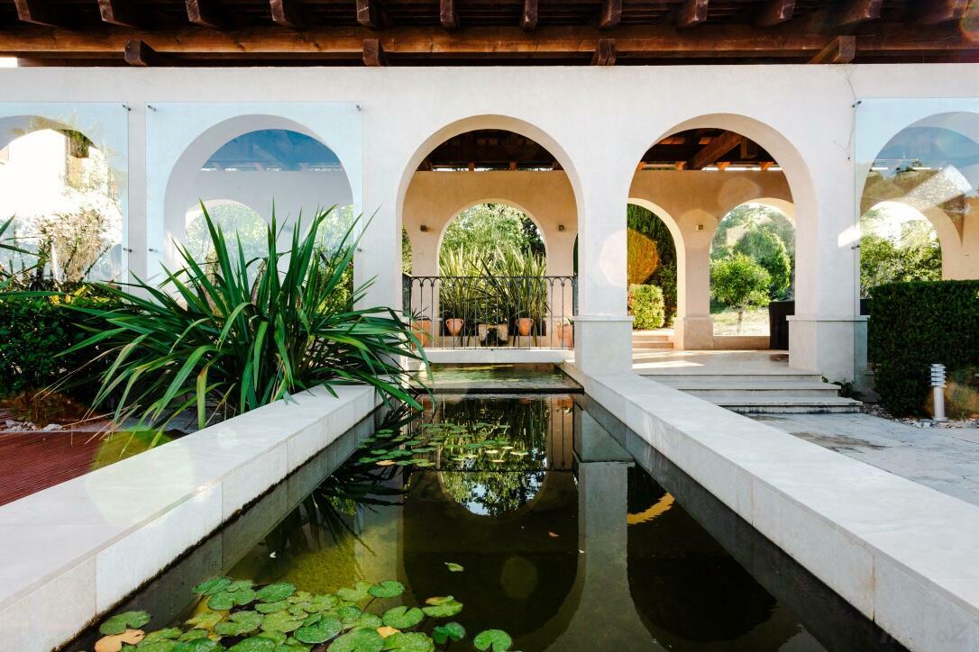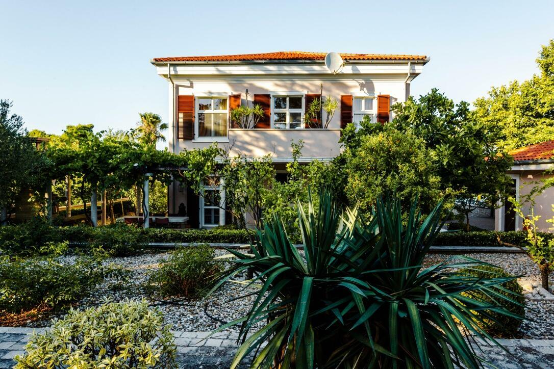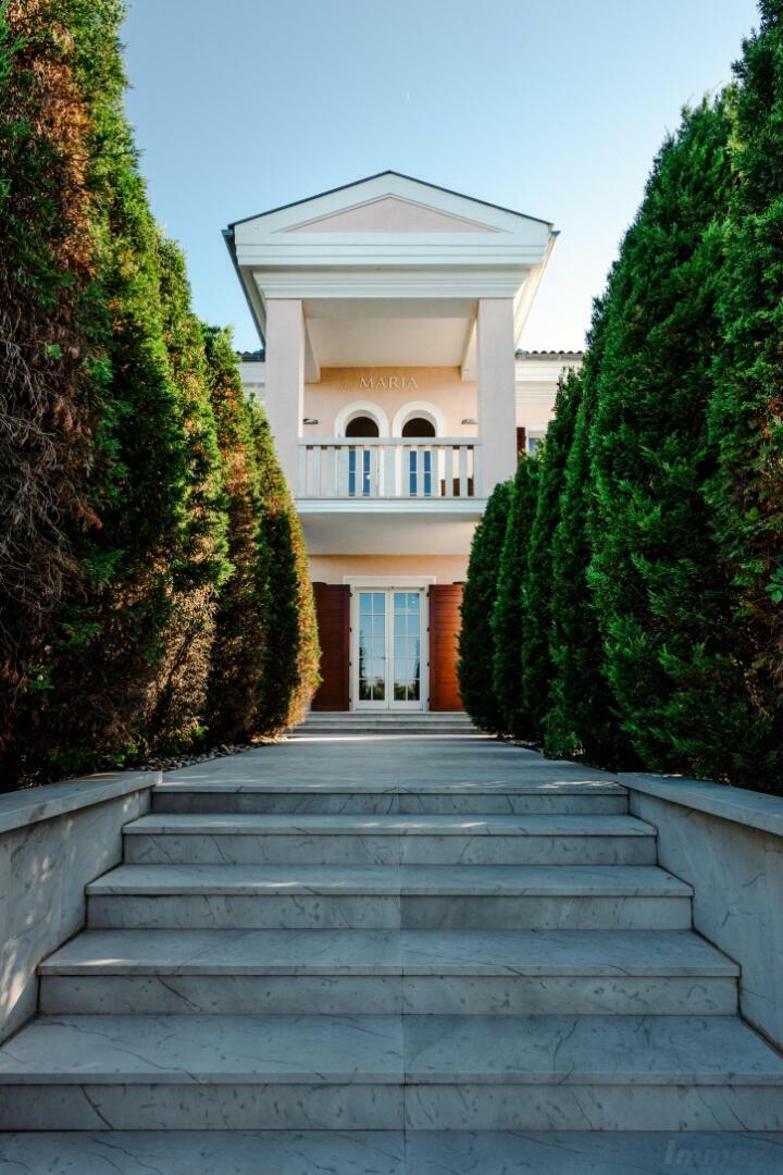 Im Garten vor dem Haus findet man ein schönes Schachfeld (ca. 4x4 Meter) sowie einen großen Pavillon mit eingebautem Billardtisch und einem kleinen Fischteich. Der Garten rund um das Haus mit immer grünen mediterranen Pflanzen, Oliven- und Zitrusbäumen, Wein- und Palmen wurde von einem geschickten Architekten geplant. Die gesamte Grundfläche beträgt ca. 2 500 m².