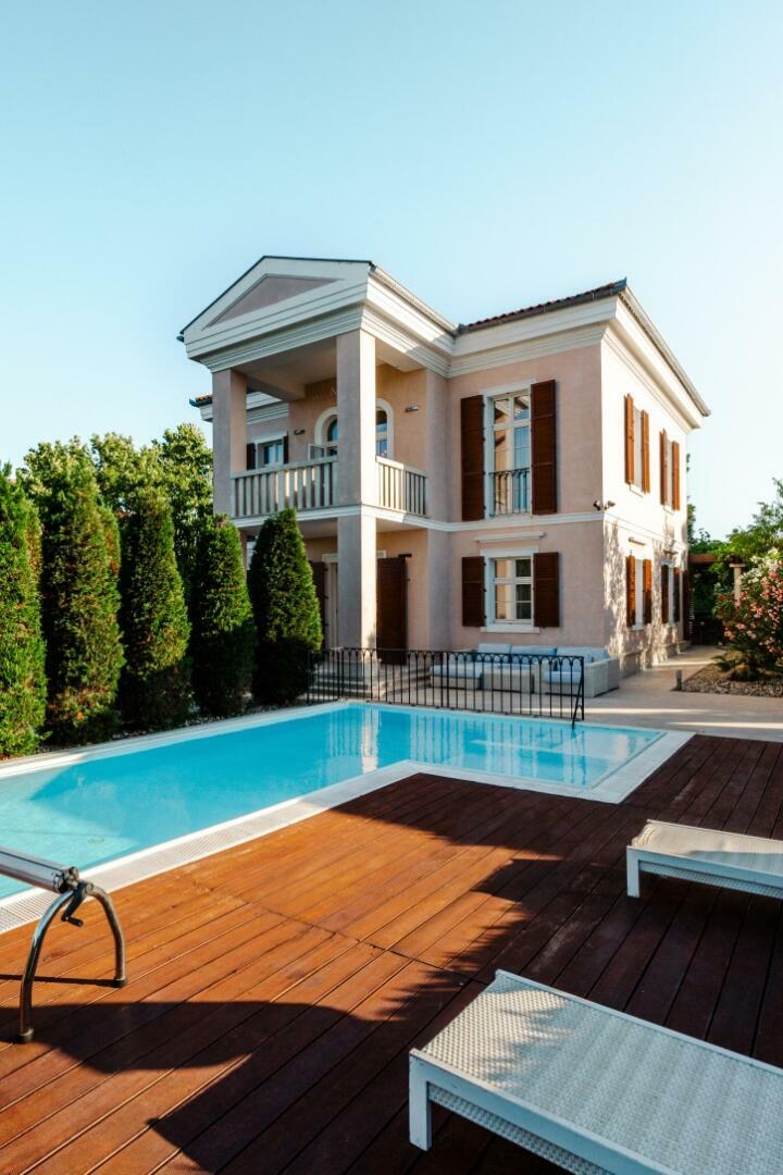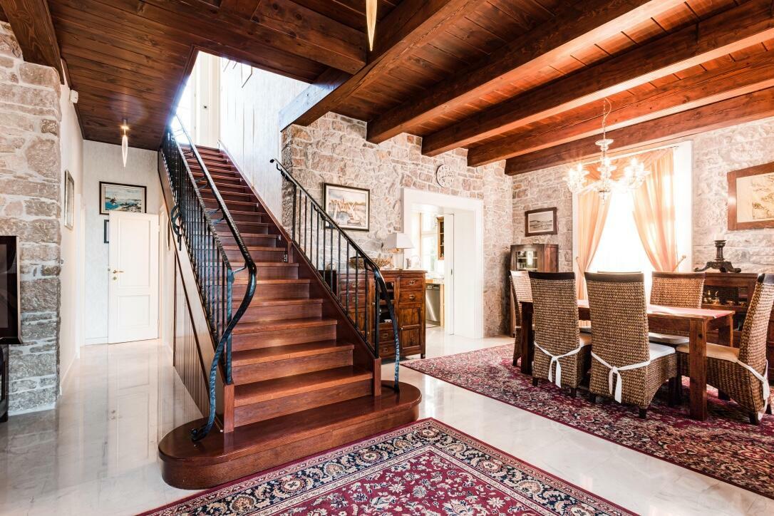 Im Gesamtpreis der Immobilie sind alle Möbel und technischen Geräte des Hauses enthalten. Im Untergeschoss befindet sich ein in den Stein gemeiselter Weinkeller von ca. 25 m². Seine Schönheit kann man einfach nicht beschreiben, man muss es sehen. Das Erdgeschoss (ca. 124 m²) besteht aus Wohnzimmer, Esszimmer, Gästetoilette, Gästezimmer mit Bad. Die voll ausgestattete Küche ist offen zur Terrasse hinter dem Haus, mit einem großen Grill-Kamin, einem riesigen Steintisch und einem Whirlpool. Das Wohnzimmer ist auf die große Terrasse mit Pool vor dem Haus mit wunderschönem Meerblick geöffnet. Im ersten Stock (ca. 124 m²) befinden sich 2 große Gästezimmer, ein Badezimmer sowie ein großes Hauptschlafzimmer mit einem separaten, großen Badezimmer und Balkon mit wunderschönem Meeresblick.