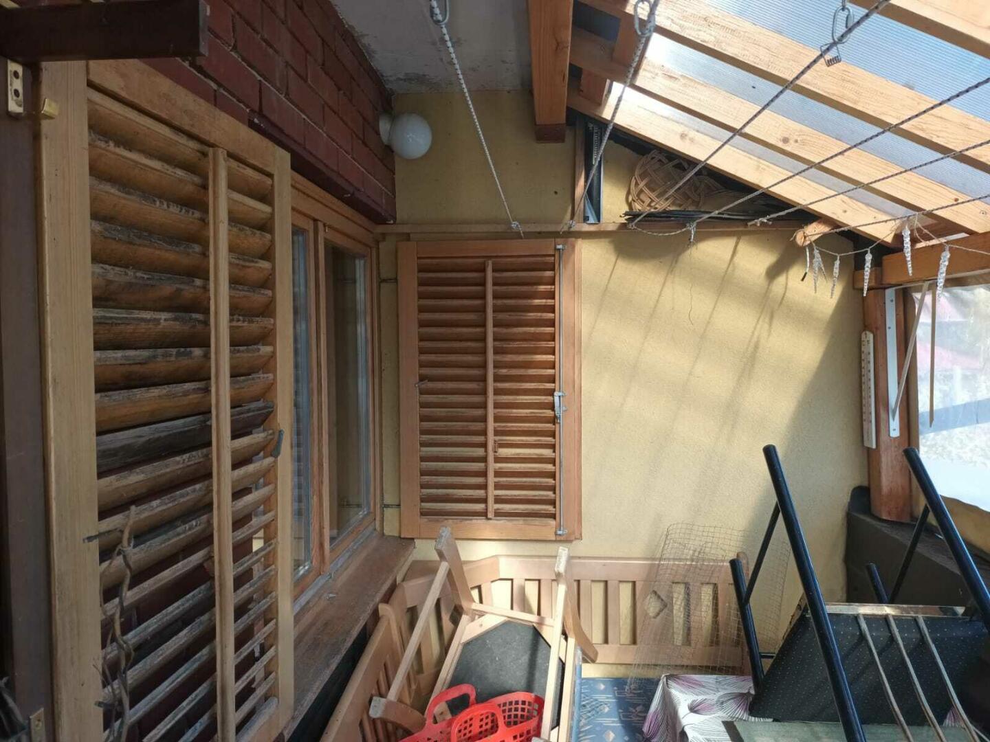 ca. 16m2, Kapazität für 30cbm Holz. Außendusche (40L), die an das Wasserversorgungsnetz angeschlossen ist.
